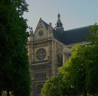 Presidiendo todo el conjunto, está la Iglesia de San Eustaquio, apoyada en sus vistosos arbotantes y botareles con un interior gótico de gran esbeltez.